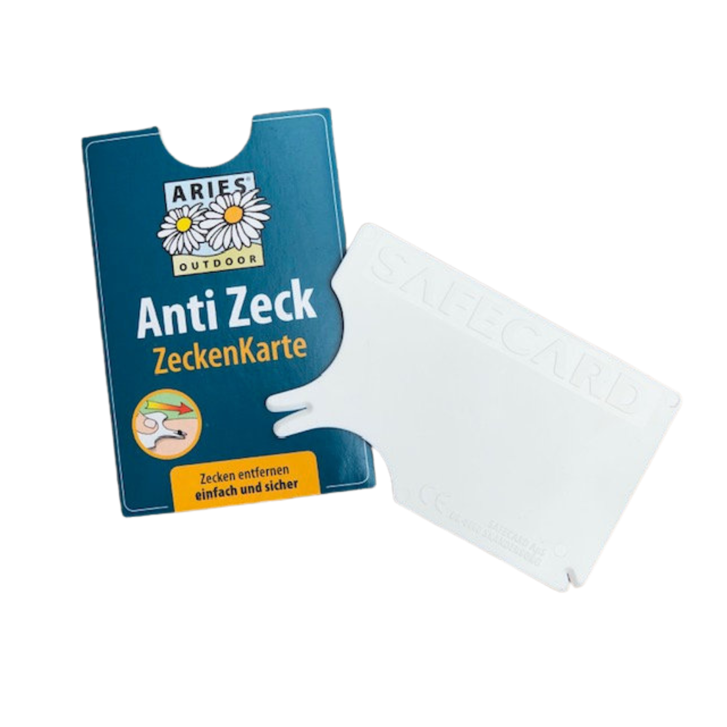 Om een teek met de kaart te verwijderen plaats je de kaart onder de teek, en til je hem iets op. De teek laat dan los.